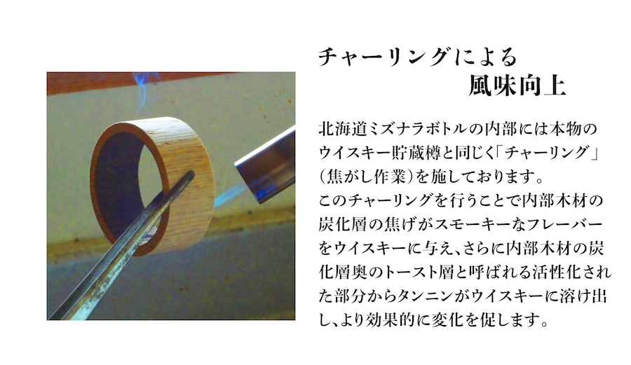 これだけでウイスキーに”再熟成”を促し、ウイスキーの風味にさらなる深みを与えることが出来ます。